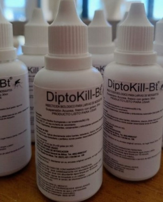 DiptoKill-BT es un biolarvicida avanzado formulado con Bacillus thuringiensis israelensis (B.t.i H-14), diseñado para el control efectivo de larvas de mosquitos y jejenes, como el Aedes aegypti. Esta presentación con gotero es ideal para aplicaciones precisas en pequeñas áreas, como fuentes, charcos y recipientes de agua estancada. Su diseño facilita una dosificación controlada, asegurando un uso eficiente y ecológico.